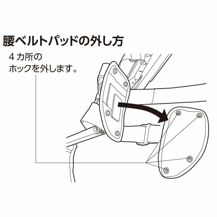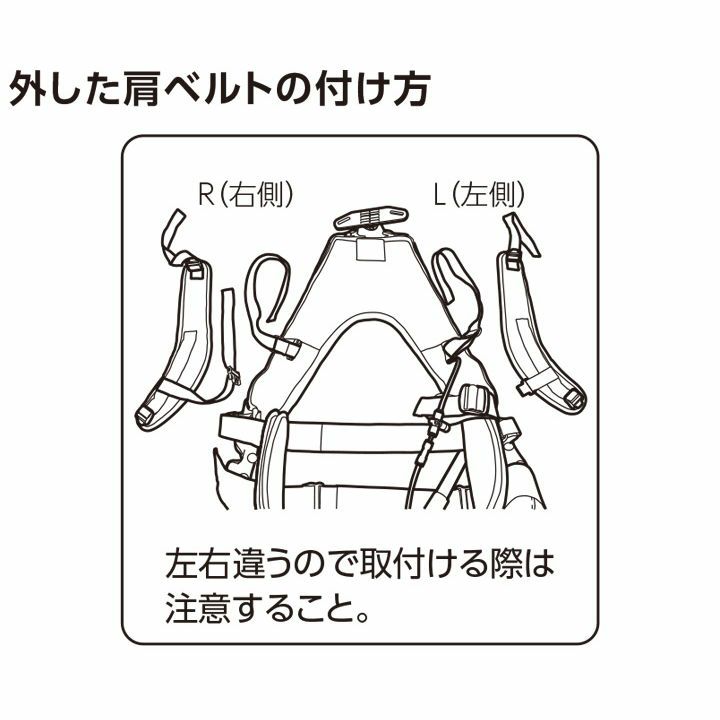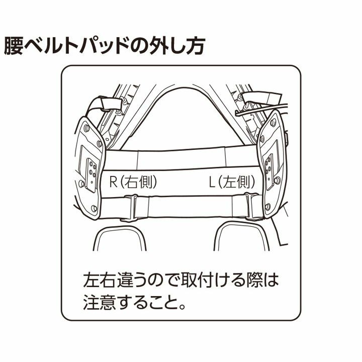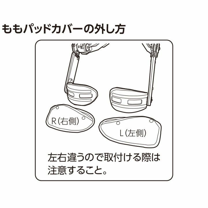 肩ベルト、腰ベルトパッド、ももパッドカバー、本体カバーのセットです。