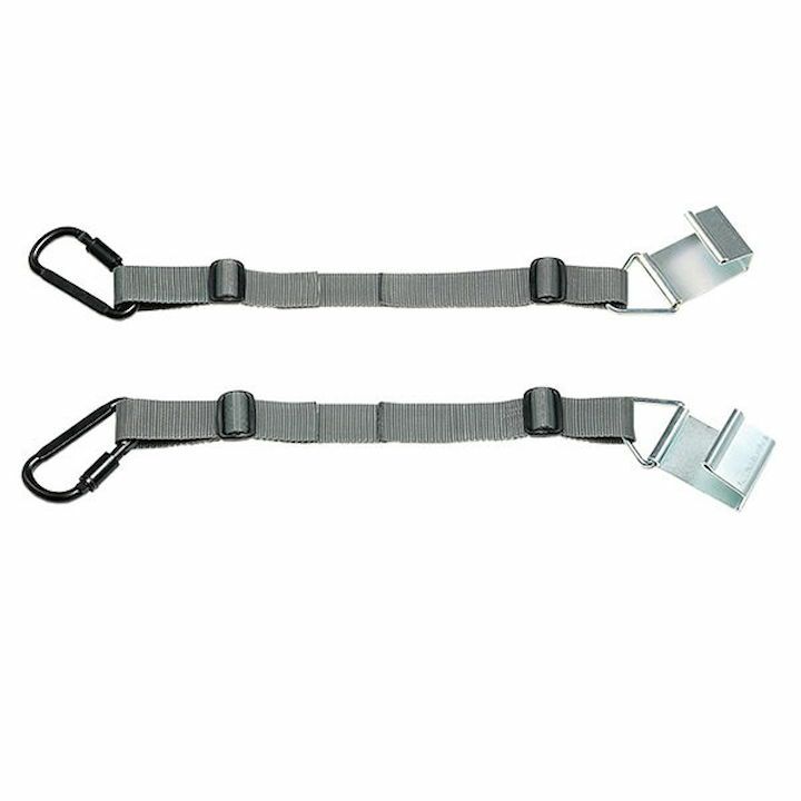 ・荷物を持ち上げる場合以外では、フックはぶら下がっているだけで自由に動くため、フックが周囲の人に当たり、ケガや傷をつけるおそれがあります。 未使用時はフック部分をカラビナにかけて収納してください。